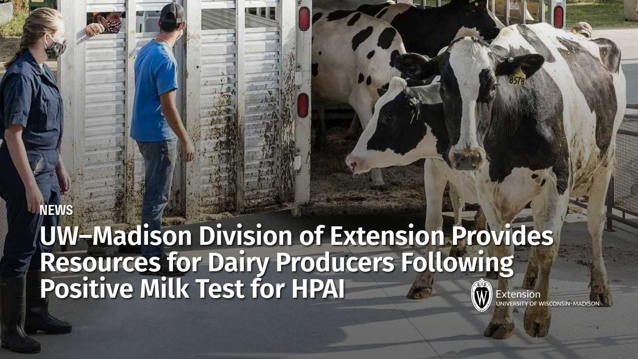 In response to the first positive milk test for highly pathogenic avian influenza (HPAI) in Wisconsin, the University of Wisconsin–Madison, Division of Extension has developed a centralized information-based webpage for Wisconsin dairy producers and the public.