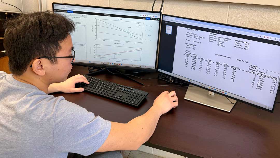 The tool also includes a feature to compare the costs of two fan options. By entering purchase price, efficiency, and capacity, users can visualize cumulative purchasing and electricity costs over time. In some cases, a higher‑priced but more energy‑efficient fan can offset its initial cost within a few years through reduced electricity expenses (Figure 2). However, when the efficiency difference between fans is small, the higher purchase price may not be recouped over the fan’s typical service life. This feature helps determine whether a fan choice makes economic sense in both the short and long term.